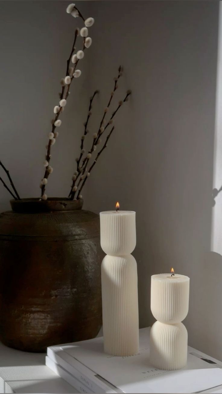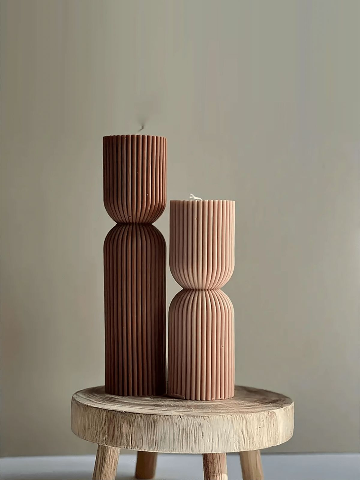 Un par de velas con textura acanalada que, juntas, representan la belleza de los vínculos auténticos. Ideales para dar un toque sofisticado y acogedor a la decoración de tu hogar.